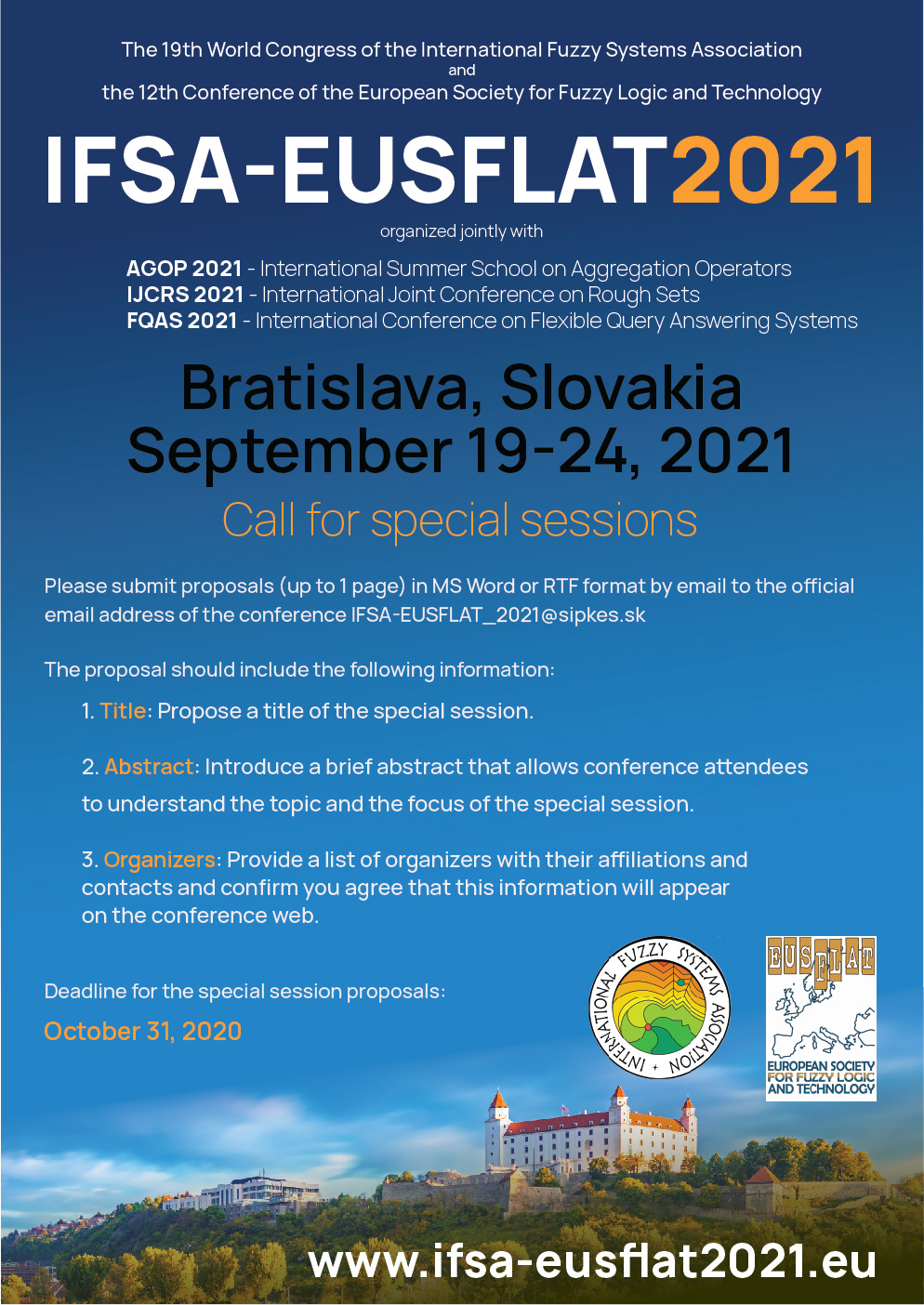 Please submit proposals (up to 1 page) in MS Word or RTF format by email to the official email address of the conference ifsa-eusflat_2021@sipkes.sk